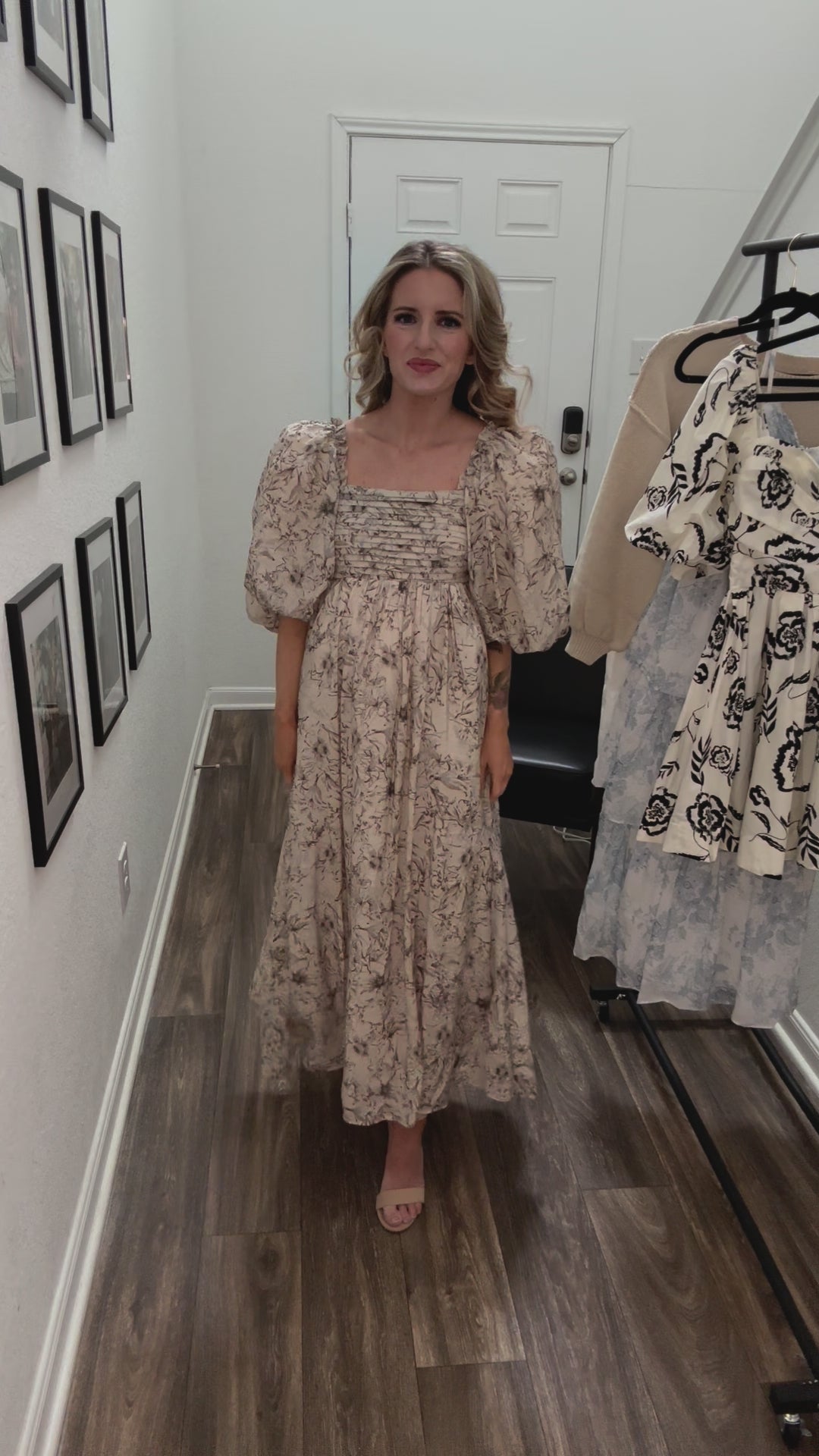 Product page > Variant picker block.FLORAL PRINTED MIDI DRESS WITH BACK TIE DETAIL