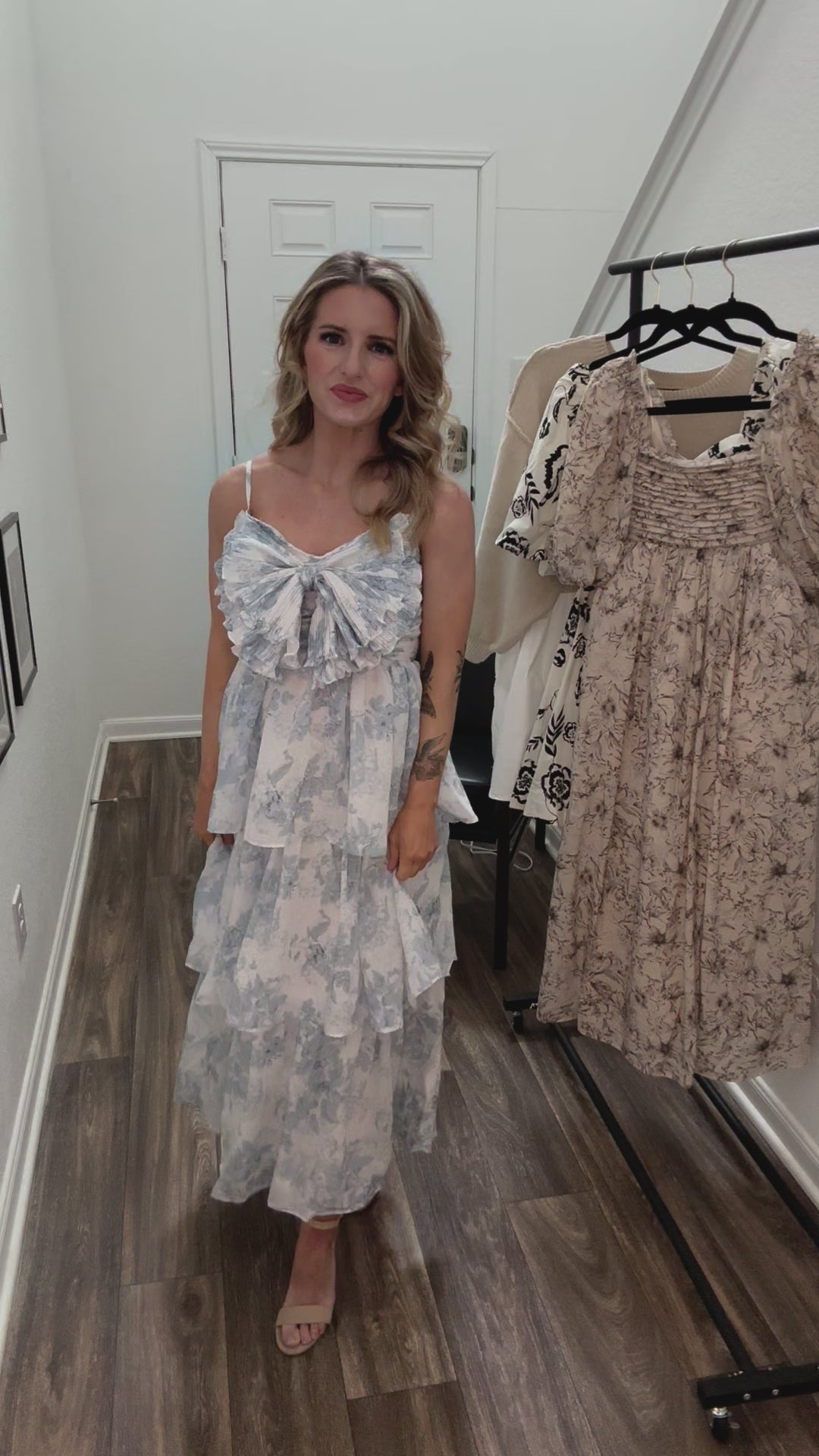 FLORAL PRINTED TIERED DRESS WITH FRONT BOW